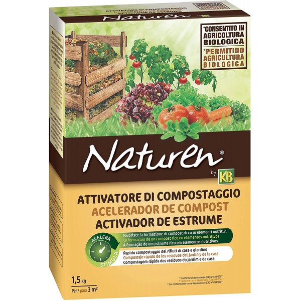 Acelerador de compost natural, aceptado para agrícultura ecológica, con substancias que ayudan a accelerar la descomposición de restos vegetales y resto organicos procedentes de nuestra cocina/hogar. Para obtener un fertilizante natural y 100% orgánico