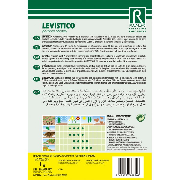 Planta vivaz. De la roseta de hojas emerge un tallo acanalado de 1,5 a 2 m que lleva flores amarillas en umbela. Raíz pivotante, aromática; el olor recuerda al del apio. Se usa como condimento. Aromatiza platos, carnes, sopas, vinagre. La raíz tiene propiedades anticonvulsivas, sedativas y expectorantes. CULTIVO: Exposición a pleno sol. Suelo rico y bien drenado.