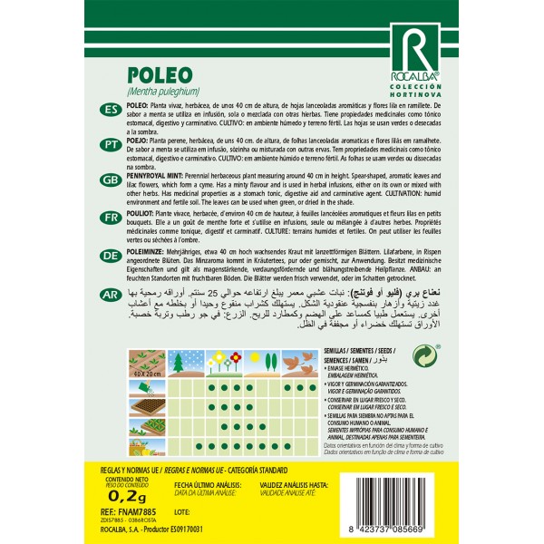 Planta vivaz, herbácea, de unos 40 cm de altura, de hojas lanceoladas aromáticas y flores lila en ramillete. De sabor a menta se utiliza en infusión, sola o mezclada con otras hierbas. Tiene propiedades medicinales como tónico estomacal, digestivo y carminativo. CULTIVO: en ambient.