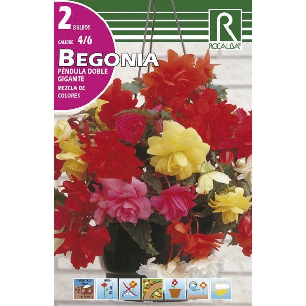 Bulbo de Begonia péndula doble gigante mezcla de colores (bolsa litografiada 2 unidades)