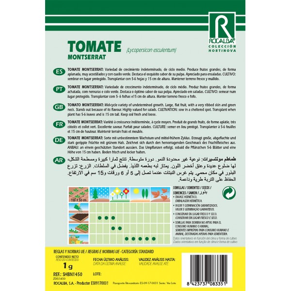 Variedad de crecimiento indeterminado, de ciclo medio. Produce frutos grandes, de forma aplanada, muy acostillados y con cuello verde. Destaca el exquisito sabor de su pulpa. Apreciado para ensaladas. CULTIVO: sembrar en lugar protegido. Transplantar con 5-6 hojas y 15 cm de altura. Mantener terreno fresco y mullido.