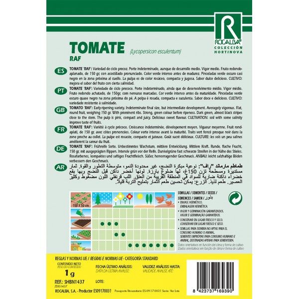 Variedad de ciclo precoz. Porte indeterminado, aunque de desarrollo medio. Vigor medio. Fruto redondoaplanado, de 150 gr, con acostillado pronunciado. Color verde intenso antes de madurez. Pinceladas verde oscuro casi negro en la zona próxima al cuello. La pulpa es de color rosáceo, compacta y jugosa. Sabor dulce delicioso. CULTIVO: mejora el sabor del fruto con cierta salinidad.