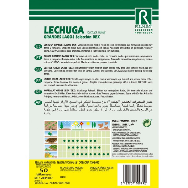 Variedad de ciclo medio. Hojas de color verde medio‚ que forman un cogollo muy denso y compacto. Brotación axilar nula. Buena resistencia a la subida. Adecuado para cultivo en primavera, verano y otoño. CULTIVO: siembra poco profunda. Mantener el cultivo siempre con humedad.