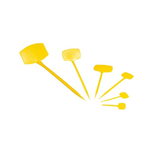 Etiqueta amarilla para pinchar en la tierra, para la identificación de sembrados o cultivos ya crecidos. Gran resistencia a las inclemencias del tiempo.